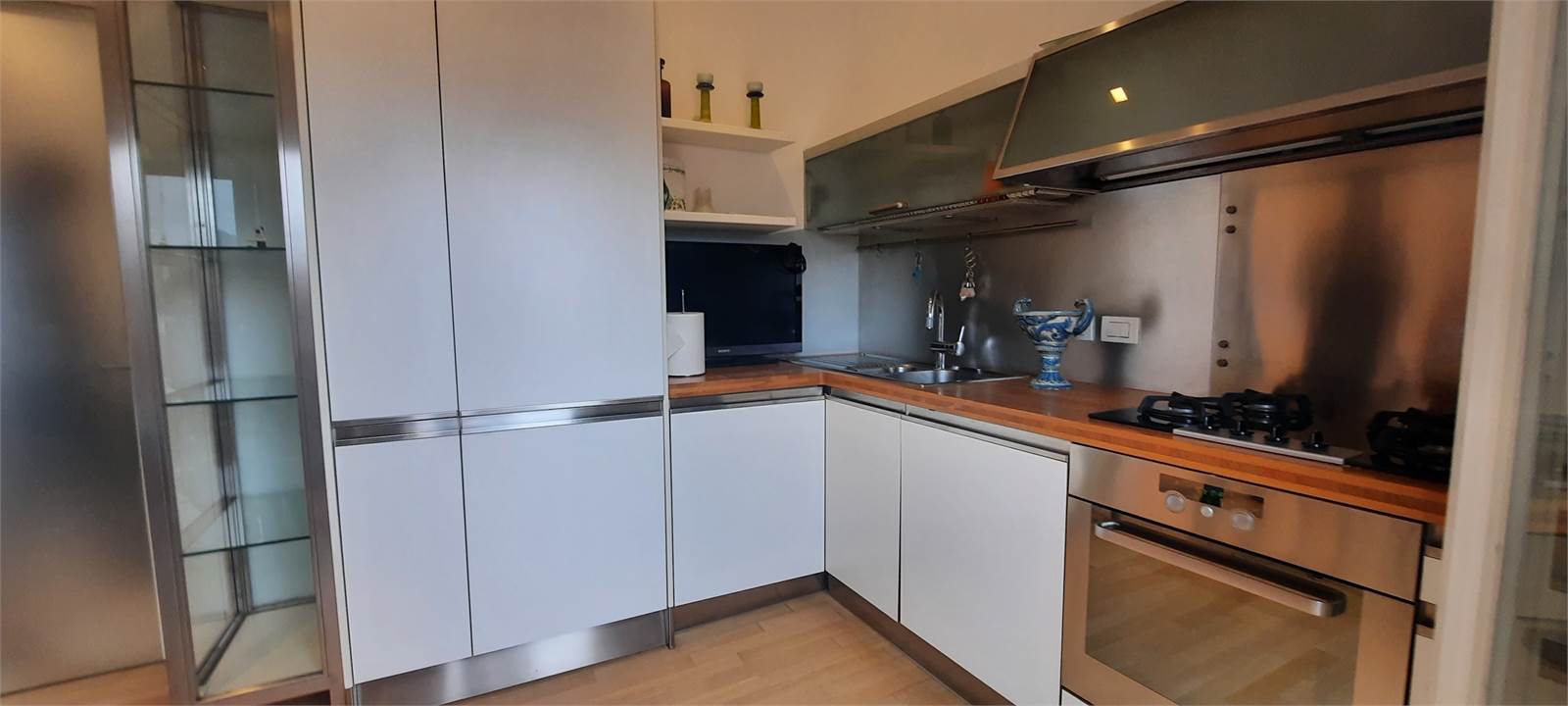 L'immobile è stato completamente ristrutturato a nuovo e viene consegnato già arredato con mobili di design e finiture di alto livello, come visibile in foto.